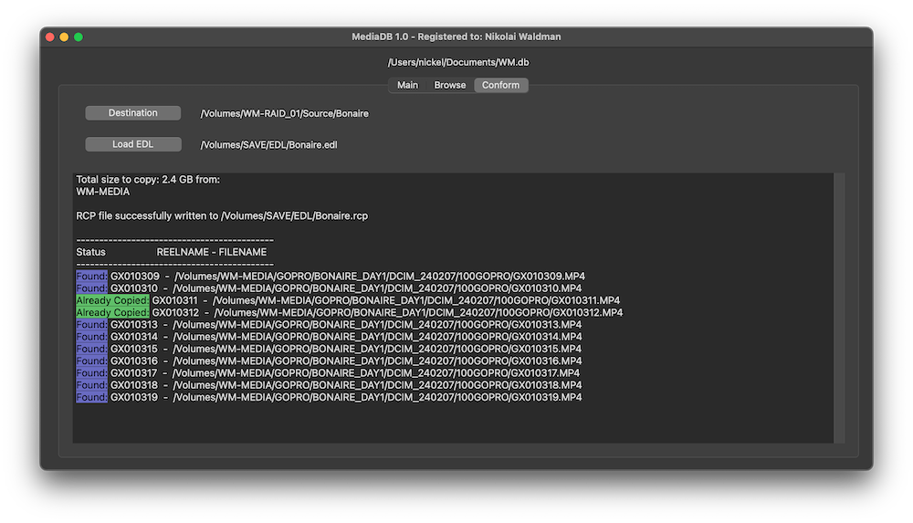 MediaDB is an essential tool for small post production houses and freelancers who work with large quantities of hard drives and discs. The app helps create a database of all the hard drives and files in use. It allows you to search for files and browse directory trees while the drives are offline. MediaDB can also be used to create an RCP file for DaVinci Resolve from an EDL during the film conforming process.